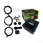 The Exo Terra® Monsoon NANO is a programmable misting system suitable for all types of terrariums and greenhouses. The Monsoon NANO is ideally suited to deliver spray water to your animals promptly and will also positively influence humidity levels through the extremely fine mist generated by the multi-directional brass spray nozzles. The spray’s duration and frequency are easily customizable to meet the specific needs of your animals or plants. Frequent misting helps stimulate breeding behaviour and is necessary when housing live tropical plants such as Bromeliads, orchids, and mosses.