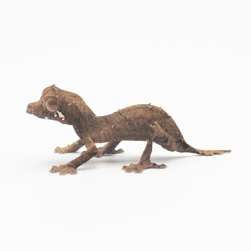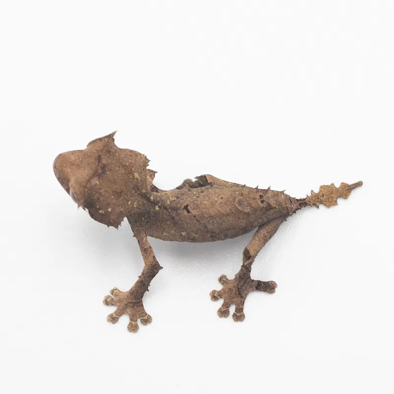 The spear-point leaf-tailed gecko (Uroplatus Ebenaui) is a native of Madagascar known for its unique appearance and exceptional camouflage abilities. These arboreal creatures grow to 6-8 inches in length and are active at night, making them great pets for those who prefer to observe them in the evening.